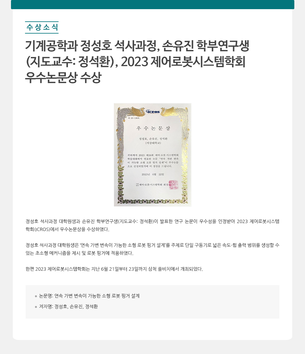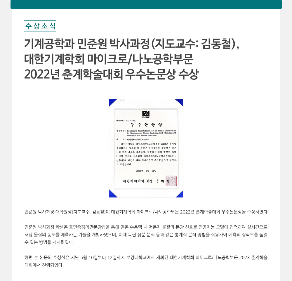 - 기계공학과 신충수 교수, 2023년