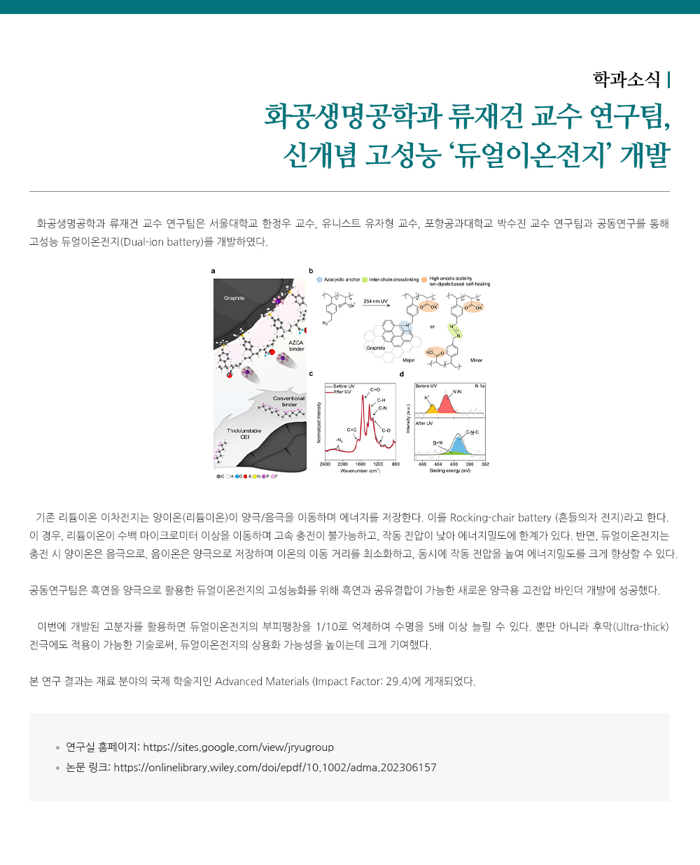 - 화공생명공학과 백서인 교수 연구팀,