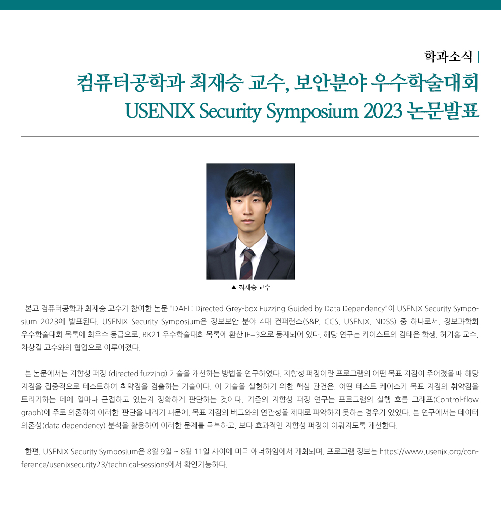 - 컴퓨터공학과 최재승 교수, 보안분야