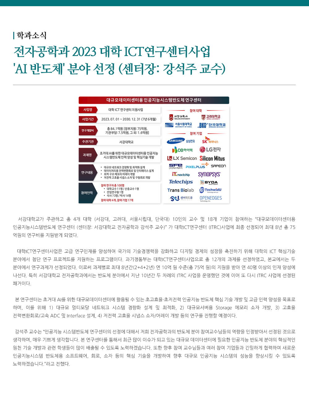 - 전자공학과 2023 대학 ICT연구센터사업