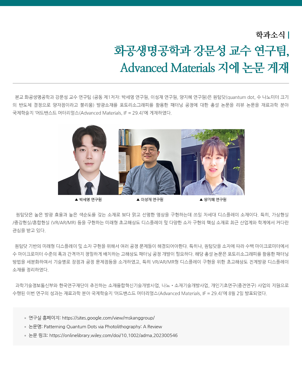 - 화공생명공학과 강문성 교수 연구팀,